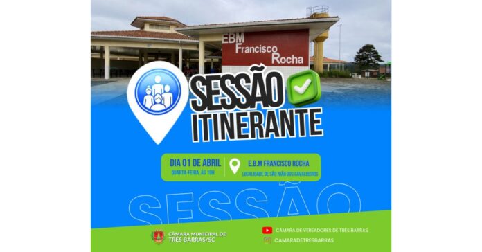 A Câmara de Vereadores de Três Barras realiza, no próximo dia 1º de abril, uma sessão itinerante na localidade de São João dos Cavalheiros