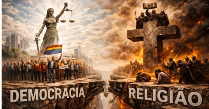A democracia moderna não nasce de um acordo religioso nem de uma revelação divina; ela nasce de uma ruptura. Surge no momento em que a humanidade decide que nenhuma verdade transcendental, nenhum livro sagrado e nenhuma autoridade espiritual pode servir de fundamento último para o poder político. A democracia só existe quando o Estado deixa de responder a Deus e passa a responder exclusivamente às pessoas, todas elas, em igualdade radical. É por isso que o Estado laico não é um detalhe administrativo, mas a condição básica de possibilidade da própria democracia. Onde o poder se ancora em verdades reveladas, a cidadania deixa de ser universal e passa a ser hierarquizada.