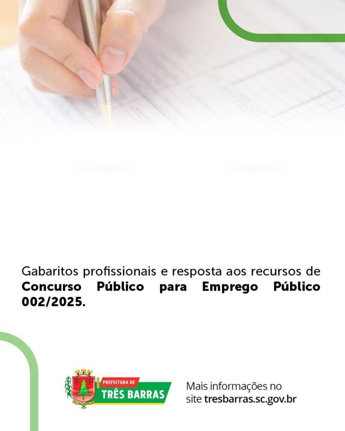 A Prefeitura de Três Barras divulgou na tarde desta terça-feira, 30, os gabaritos profissionais para os cargos de médicos generalista e pediatra como também, para enfermeiro e a resposta aos recursos.