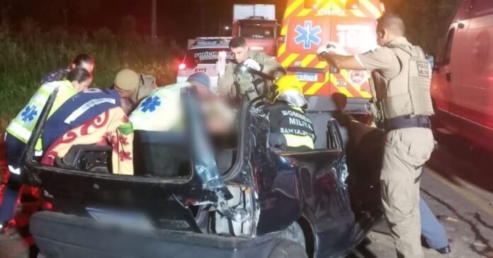 O outro veículo envolvido era um Renault Clio, preto, placa de Porto União, conduzido por uma mulher de 22 anos que foi atendida por uma guarnição do bombeiro militar de União da Vitória-PR e conduzida ao hospital APMI.
