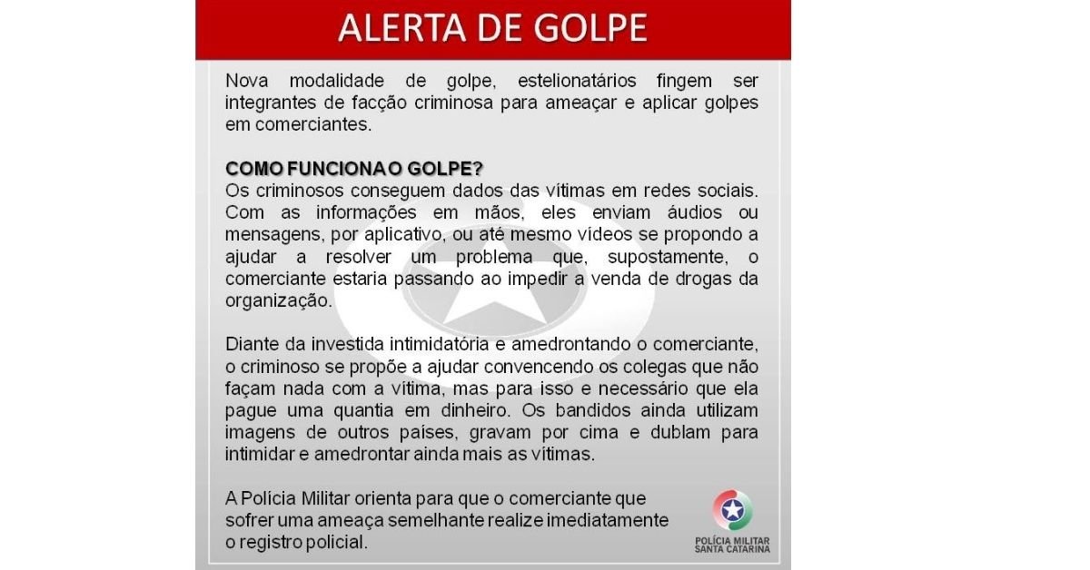 A Polícia Militar orienta para que os comerciantes que sofrerem ameaças semelhantes realizem imediatamente o registro policial e não depositem nenhum tipo de valor.