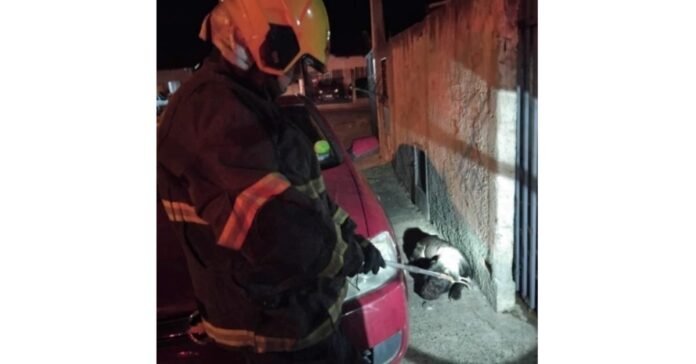 O Corpo de Bombeiros foi acionado para capturar o cão, que foi confinado na residência onde vive, embora o responsável pelo animal não estivesse no local e tenha se evadido antes da chegada das guarnições.