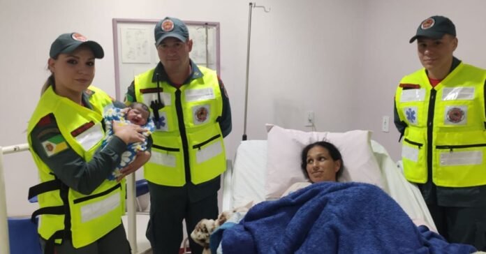 Em seguida, a parturiente foi colocada na viatura para a condução ao hospital de Três Barras. Durante o deslocamento a mesma entrou em trabalho de parto, o qual foi auxiliado pela guarnição.