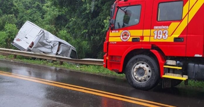 O Corpo de Bombeiros Militar de Canoinhas foi acionado para atender a ocorrência e no local a guarnição constatou que se tratava de uma saída de pista seguida de capotamento envolvendo um veículo Mercedes Benz Sprinter e encontrava-se às margens da pista de rolamento.