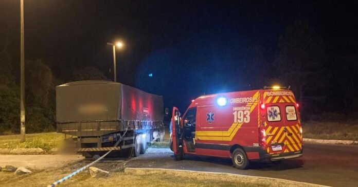 No local, foi confirmada a natureza da ocorrência, envolvendo um caminhão Ford Cargo 2422, placa mercosul, de cor branca, conduzido por um homem de 66 anos.