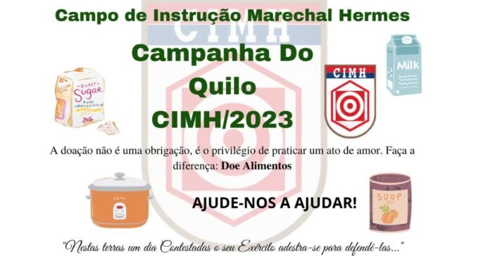 O Campo de Instrução Marechal Hermes (CIMH), está realizando até o dia 11 de setembro a Campanha Do Quilo/2023, que tem como objetivo arrecadar a maior quantidade possível de alimentos não perecíveis, para que possamos auxiliar as instituições de assistência à pessoas em vulnerabilidade social.