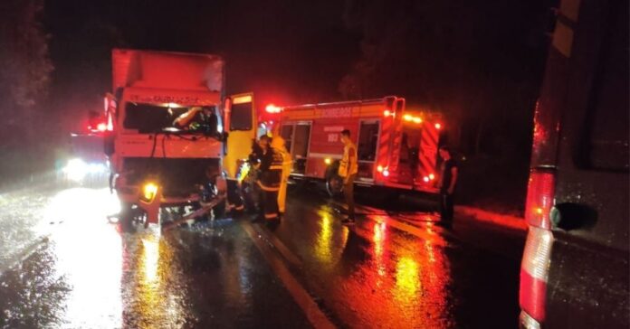 No local verificou-se uma colisão traseira entre dois caminhões. O primeiro Veículo, Ford Cargo 1521 Vermelho de Placa de (Porto União), era conduzido por um homem, o qual não apresentava ferimentos e não precisou ser atendido.