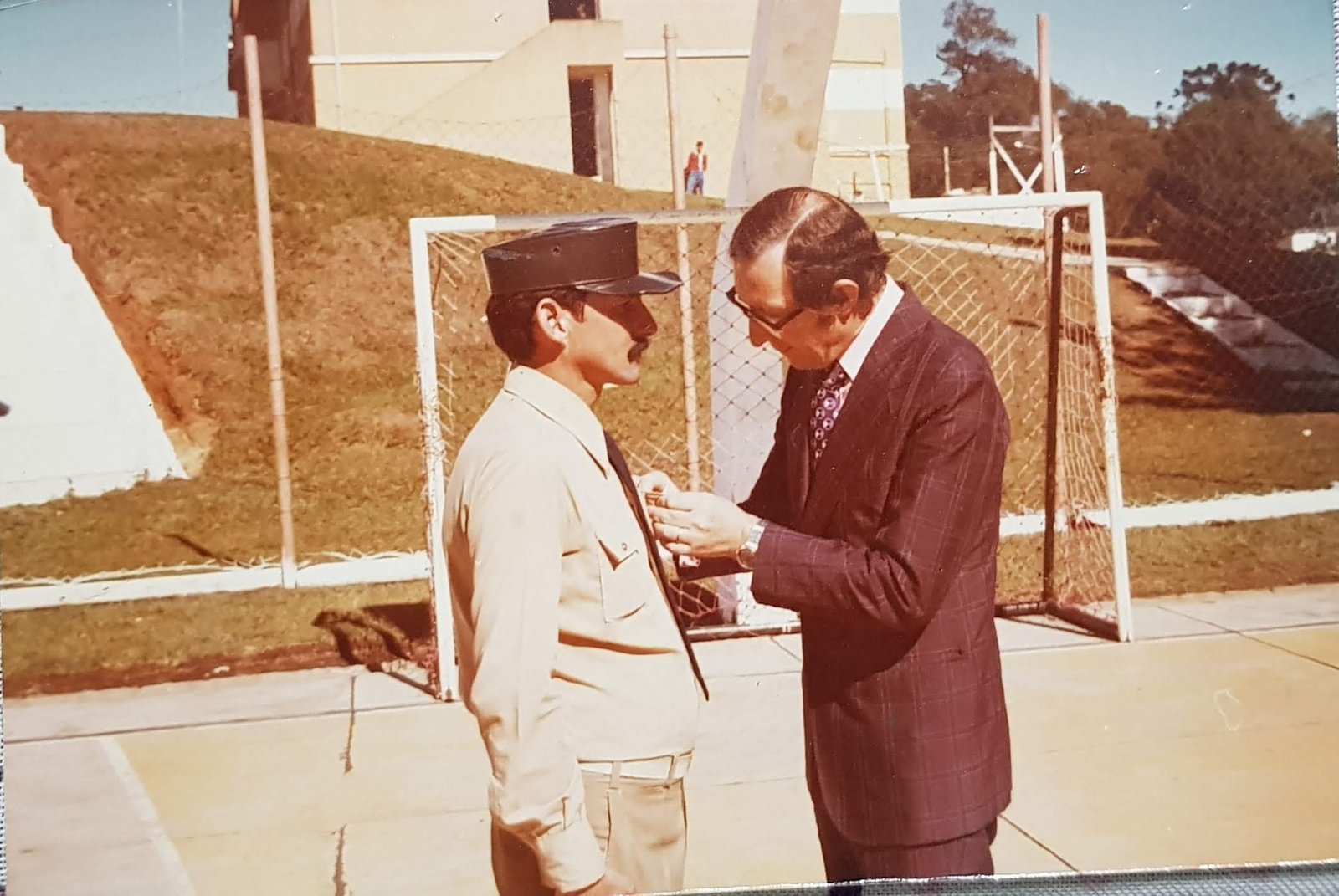 Recebendo medalha de 10 anos no 3BPM – 1973 – medalha entregue pelo gerente do Banco do Brasil