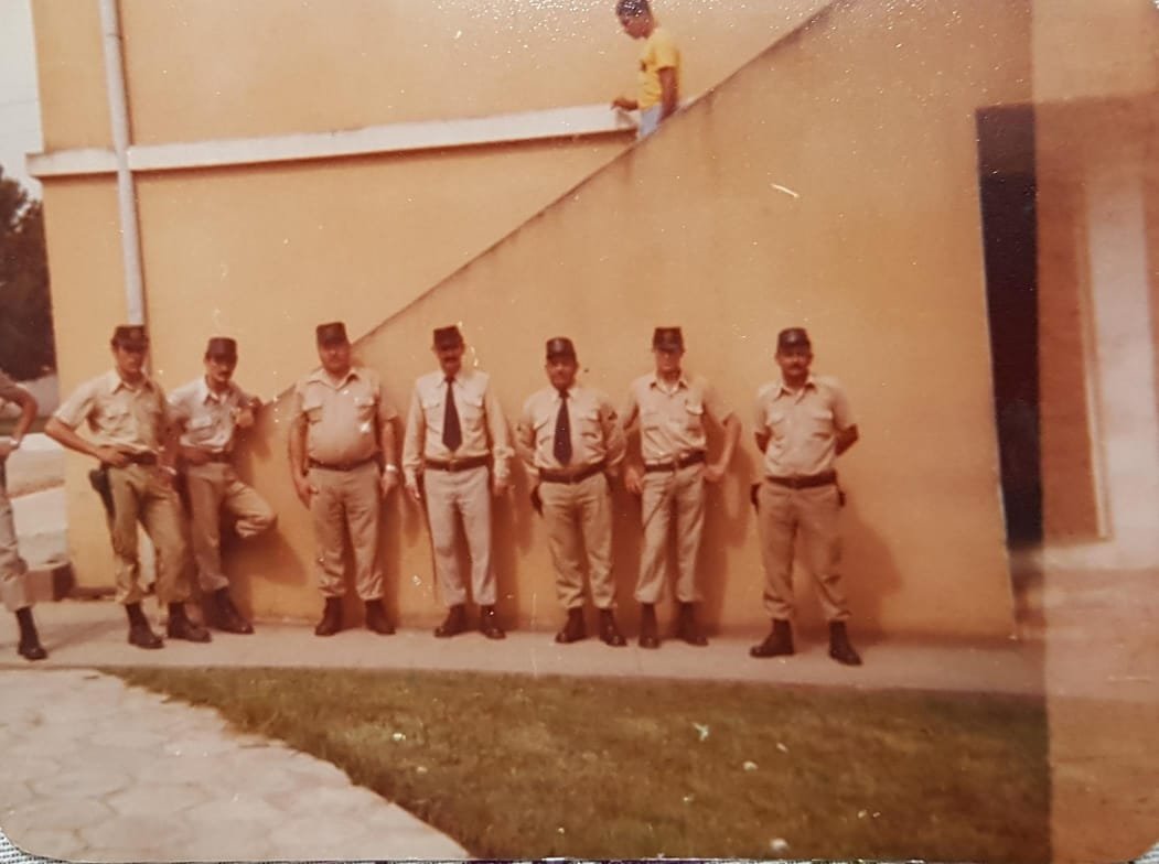 Tenente Eny Tomazelli à esquerda da foto ladeado pelo sargenteante. Companhia de Porto União. 1964