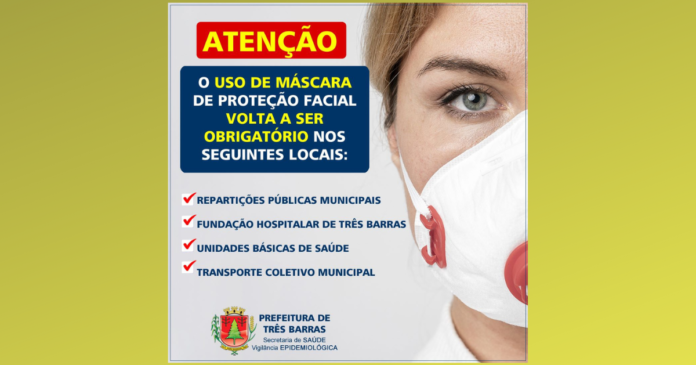 Diante do potencial aumento de casos de covid-19 no município, o uso de máscara de proteção facial volta a ser obrigatório em alguns locais de Três Barras.