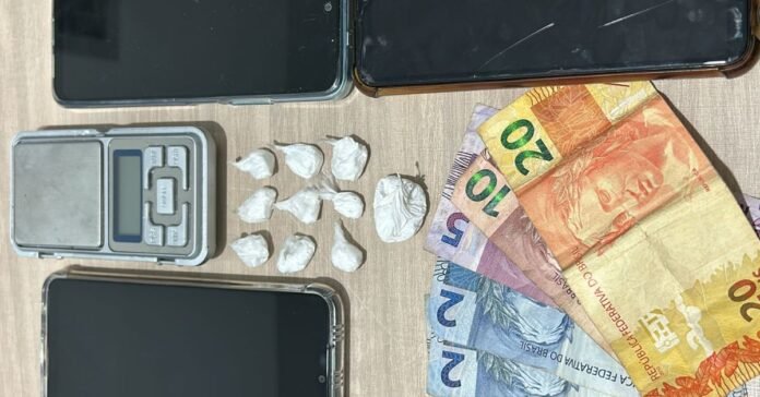 O mesmo foi até o veículo, sendo possível observar quando o motorista lhe entregou algo, momento em que foi acionada a equipe ostensiva para efetuar a abordagem. Em busca pessoal, foi encontrado com o homem uma bucha de cocaína.
