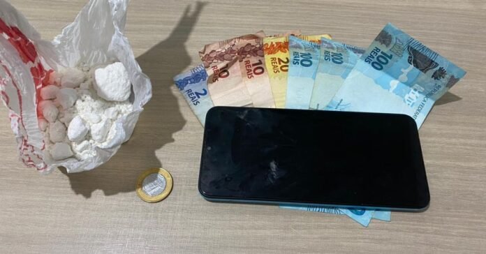 Ao realizar busca pessoal no condutor, foi encontrado 50 gramas de cocaína. No interior do veículo estavam seus dois filhos menores de idade.