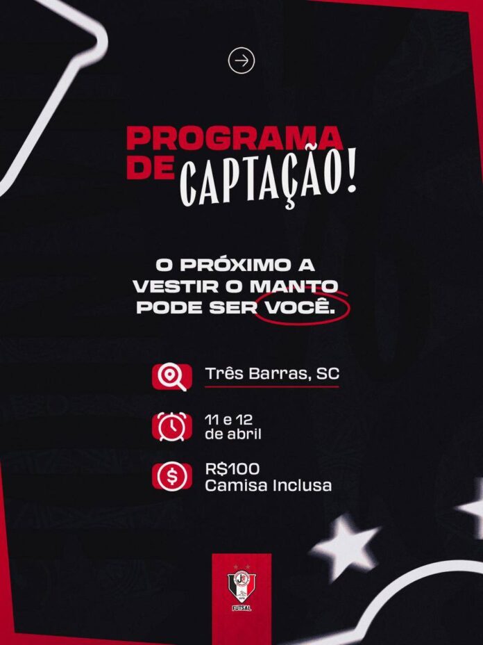 Se o seu sonho é ser um cria do JEC Futsal, chegou a sua hora!