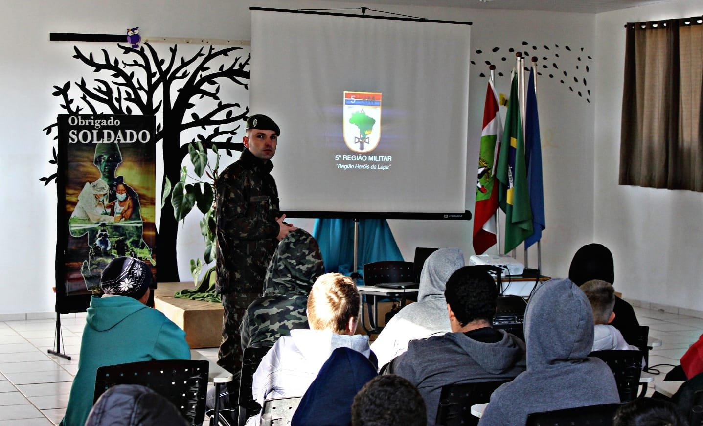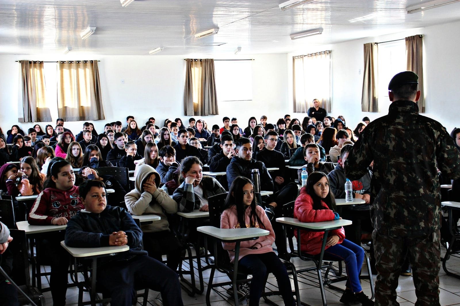 Na manhã e tarde desta quarta-feira, 28, dando continuidade ao – Projeto Conhecendo Nossa História – os militares do Campo de Instrução Marechal Hermes – CIMH estiveram na Escola Básica Municipal Castelo Branco, de Canoinhas, ministrando palestra aos alunos daquela instituição.