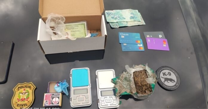 No cômodo onde o suspeito estava, os policiais localizaram ainda porções de maconha, crack e balanças de precisão, o que motivou sua prisão em flagrante por tráfico de drogas, considerando os elementos de investigação de que o foragido comercializava ilícitos na região.