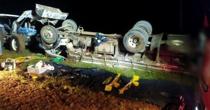 No interior do veículo, havia um homem de 35 anos, consciente e orientado, preso nas ferragens. Sendo realizada a extração da vítima com auxílio das ferramentas hidráulicas de desencarceramento e apoio de um trator.