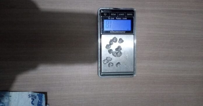 Após busca pessoal, foi localizado com o adolescente, 12 pedras de crack, totalizando 1,8 gramas. No boné foram localizados R$25 reais.