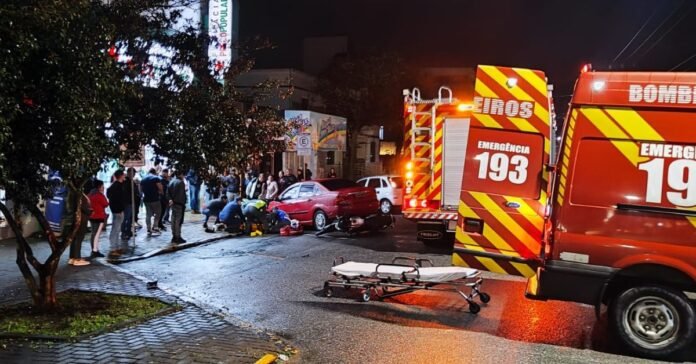 Jovem de 22 anos fica gravemente ferido em acidente no centro de Canoinhas