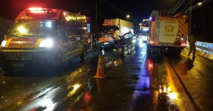 Um homem ficou preso às ferragens após se envolver em um grave acidente, na noite deste domingo (18), na BR-476, próximo à ponte do Rio Iguaçu, em São Mateus do Sul. A colisão envolveu um VW/Gol de cor vermelha com placas de São Mateus do Sul e um Chevrolet/Track de cor preta, sem placas.