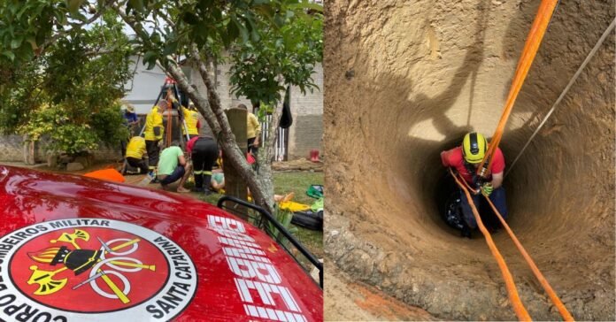 Mulher é resgatada após cair em poço