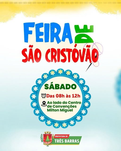 O Alto do Mussi, em Três Barras, será palco de mais uma edição da Feira de São Cristóvão no próximo sábado, 18 de abril. O evento, que já se tornou um ponto de encontro tradicional na região, ocorre ao lado do Centro de Convenções Vereador Milton Miguel, entre 08h e 12h.