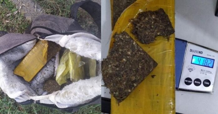 Os policiais deslocaram até o endereço, solicitaram a mãe do jovem autorização para entrada na residência. Foi realizado buscas e no quarto foi encontrado 418 gramas de maconha. A droga estava acondicionada em uma mochila em baixo da cama do jovem.