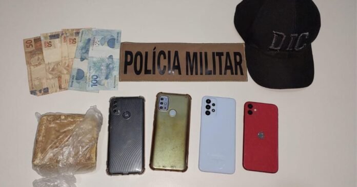 Apreendidos aparelhos celulares, o dinheiro encontrado e o veículo objeto de transporte do entorpecente, sendo entregues na Delegacia, juntamente com os envolvidos para as providências cabíveis