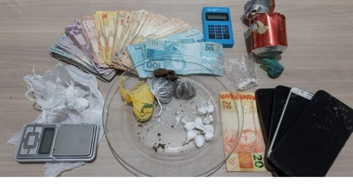Diante dos fatos, a guarnição retornou a residência e abordou um adolescente que de imediato informou onde estava a droga. Alí foram apreendidos cinco torrões de maconha e 10 buchas de cocaína. Em outra residência apontada como ponto de tráfico, os policiais apreenderam cinco gramas de cocaína, uma balança de precisão, R$3.538 reais em espécie, quatro gaiolas contendo: um azulão, um trinca ferro, um coleirinho e dois canários da terra, todos sem anilha.