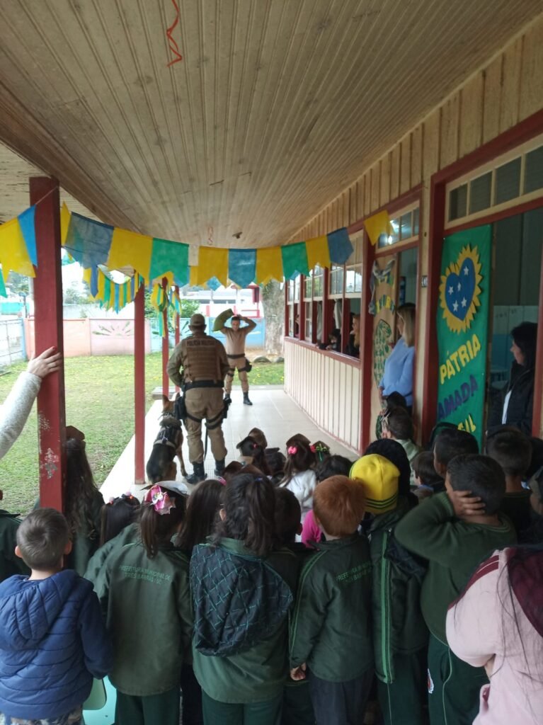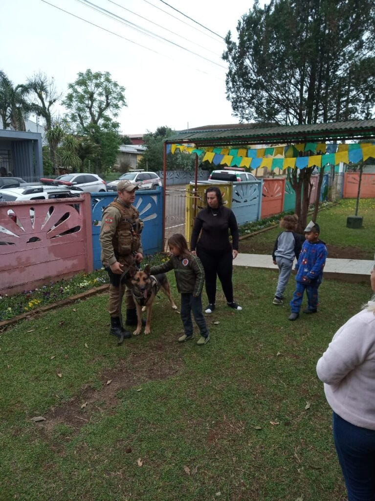 Nesta quarta-feira, 21, a Polícia Militar de Três Barras juntamente com o Canil do 3ºBPM/Canoinhas estiveram no CMEI Merhy Bechara Seleme, tendo como público-alvo 83 alunos do pré-escolar I e II.