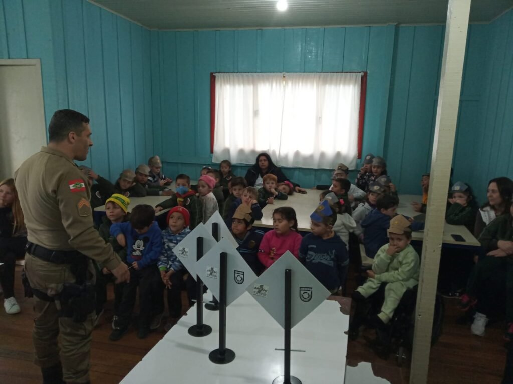 Nesta quarta-feira, 21, a Polícia Militar de Três Barras juntamente com o Canil do 3ºBPM/Canoinhas estiveram no CMEI Merhy Bechara Seleme, tendo como público-alvo 83 alunos do pré-escolar I e II.