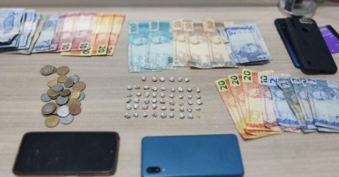 Após buscas, foi localizado no quarto do primeiro piso, um pote contendo 45 porções de crack e dinheiro.
