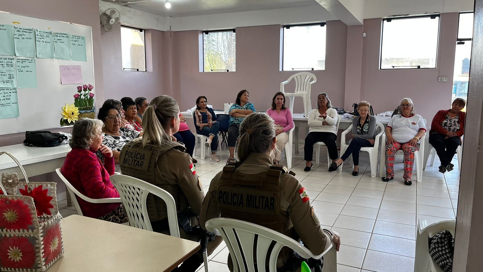 As Policiais Militares da Rede Catarina de Proteção à Mulher do 3º BPM realizaram nesta sexta-feira, 01, uma roda de conversa sobre Violência Doméstica Contra a Mulher, para as mulheres do Grupo da Melhor Idade, no bairro São Cristóvão em Três Barras.