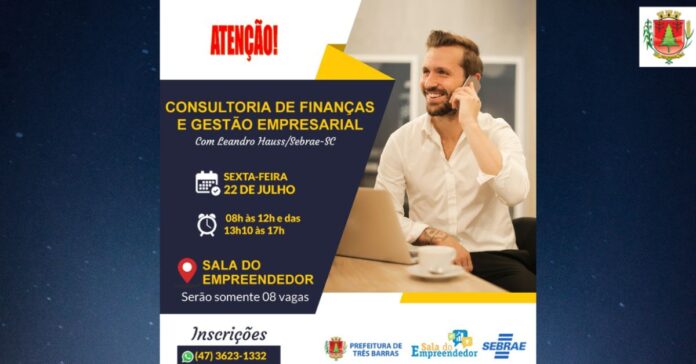 Atenção microempreendedores individuais e micro e pequenos empresários! A Sala do Empreendedor de Três Barras realiza na próxima sexta-feira, 22 de julho, consultoria sobre o tema “Finanças e Gestão Empresarial”.