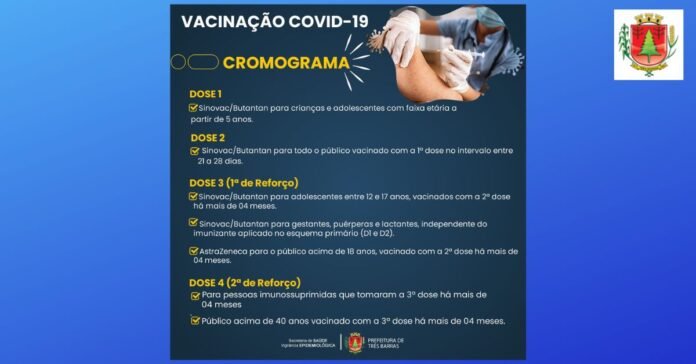 A secretaria municipal de Saúde, por meio da Vigilância Epidemiológica, informa o cronograma de vacinação contra a covid-19 em Três Barras, a partir desta terça-feira, 12.