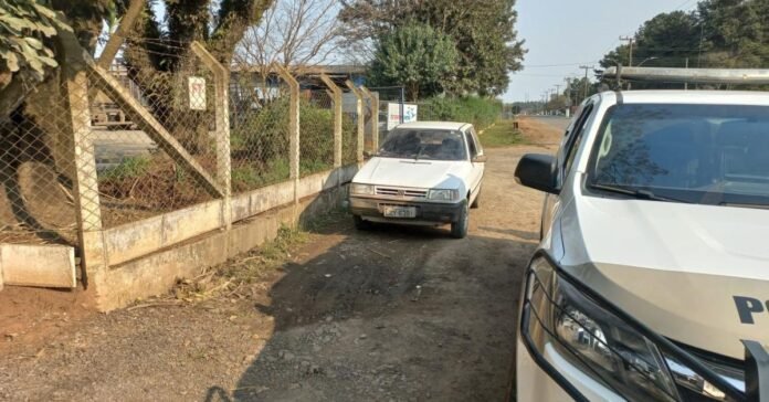 No local, a guarnição encontrou um veículo Fiat Uno estacionado próximo ao portão de uma